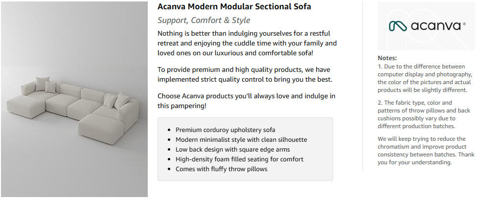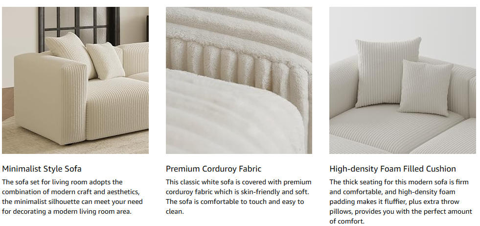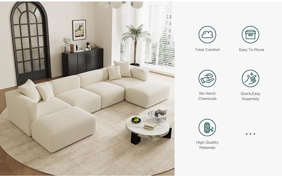 Soft and skin-friendly corduroy: Indulge in the luxurious comfort of the corduroy fabric upholstery, known for its durability, beauty, and softness, for an unparalleled lounging experience on this sectional couch that you can enjoy for years to come.