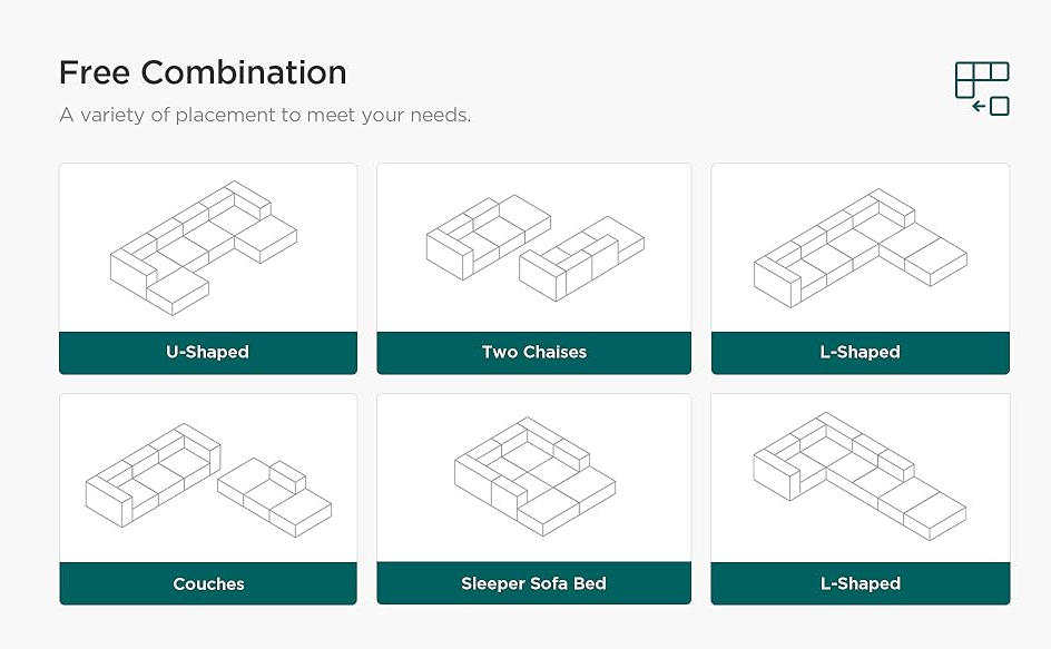 Free combinations: Enjoy the freedom of creating different layout combinations with each piece, whether you prefer a chair, loveseat, couch, L-shaped couch, or U-shaped couch, allowing you to personalize your seating arrangement to suit your space and preferences.