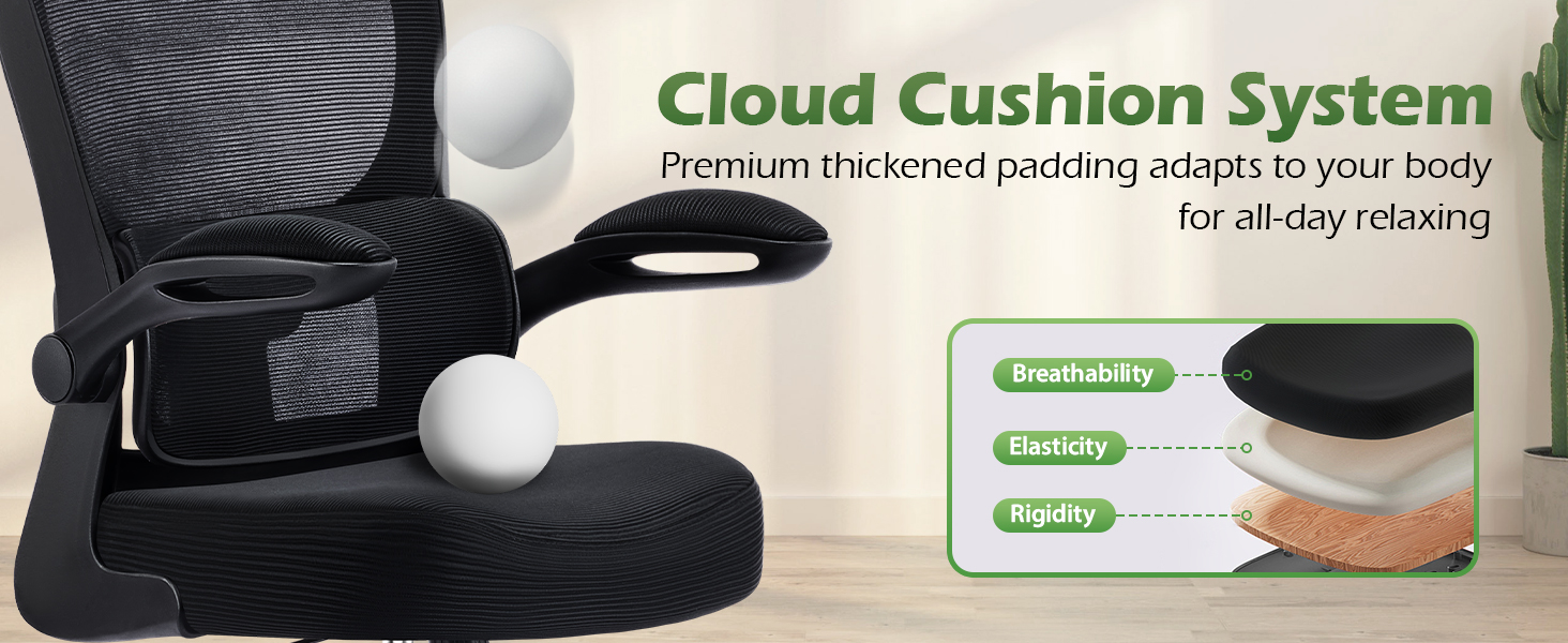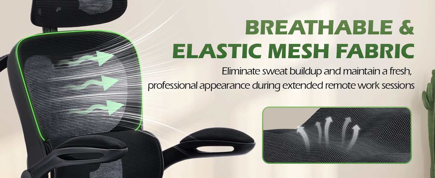Breathable All-Day Comfort: Stay cool and focused thanks to advanced breathable mesh fabric promoting continuous airflow. Combined with a high-density, collapse-resistant foam seat cushion, this mesh office chair prevents overheating and discomfort, even during marathon workdays