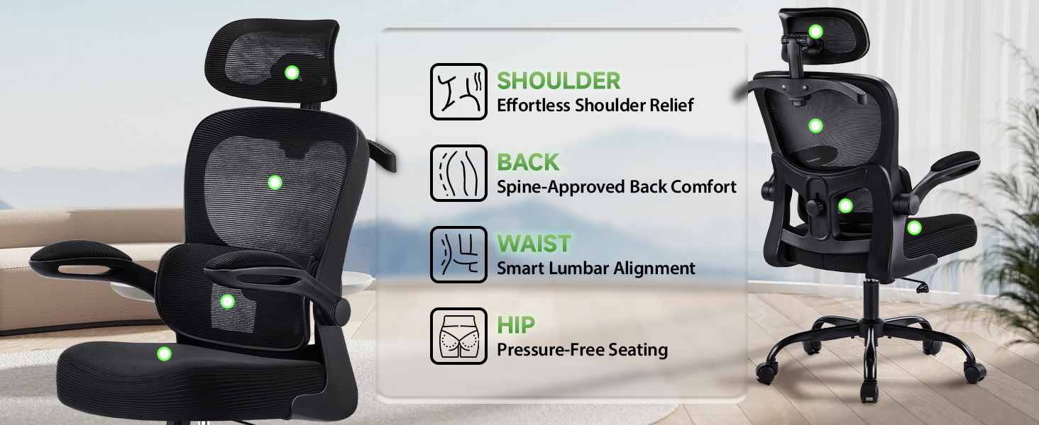 Engineered Ergonomic Support: Experience unparalleled comfort with our office chair, designed with targeted head, shoulder, back, seat, and arm support. The adjustable lumbar support promotes a healthy posture, and the upgraded 3D headrest provides vertical, forward/backward, and 60° adjustments, reducing strain during long working hours