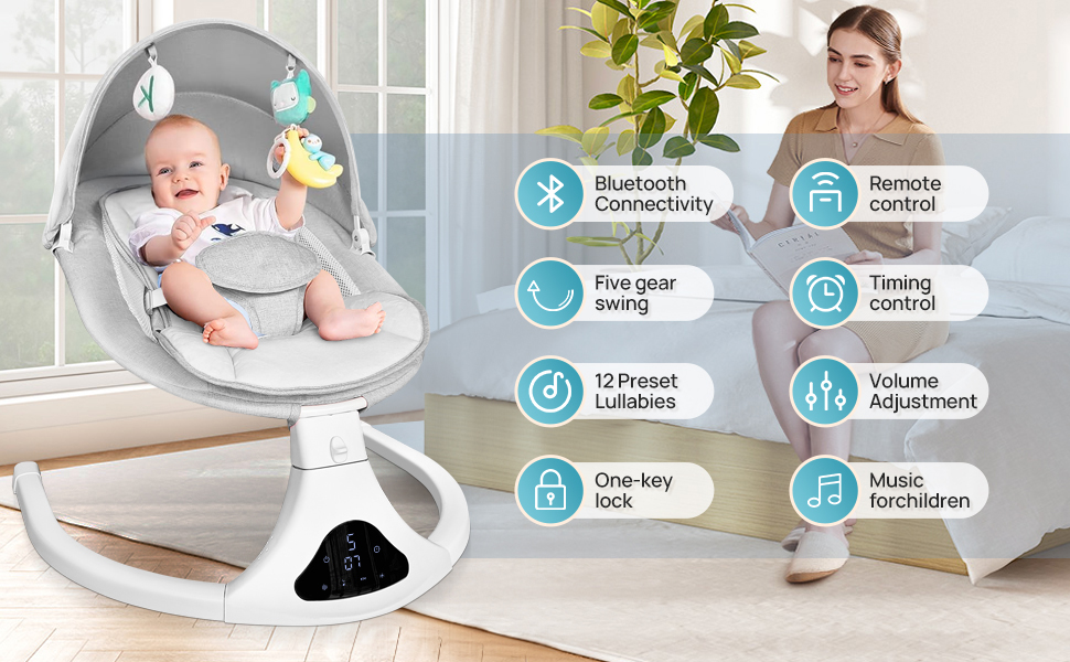 Technology&Music:The baby swing is equipped with Bluetooth connectivity, allowing parents to easily play your little one's favorite tunes.