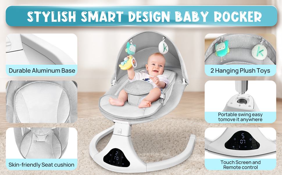 Music Speaker: The rocking chair is equipped with a music speaker that can play lullabies, which can provide a comfortable and quiet rocking environment.