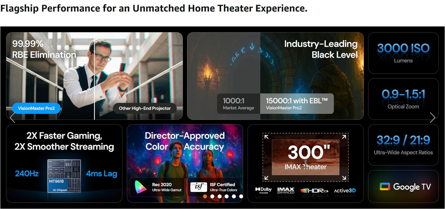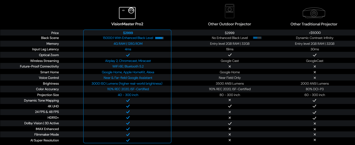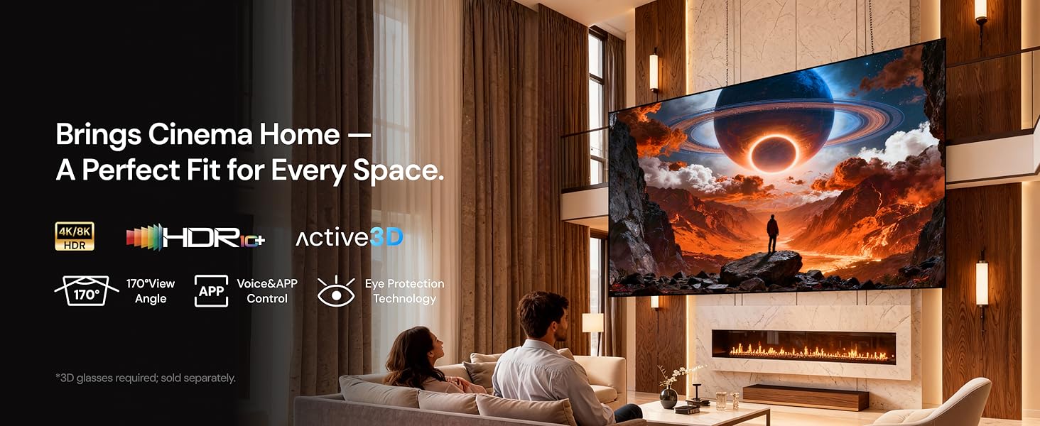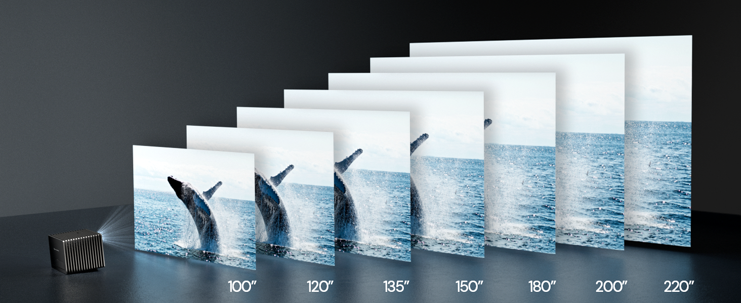 Available in 100" to 220" (16:9):Choose from a range of screen sizes to perfectly fit your space and viewing needs. Tailor your screen size UP to 220" for a perfect fit on your wall and an immersive viewing experience.