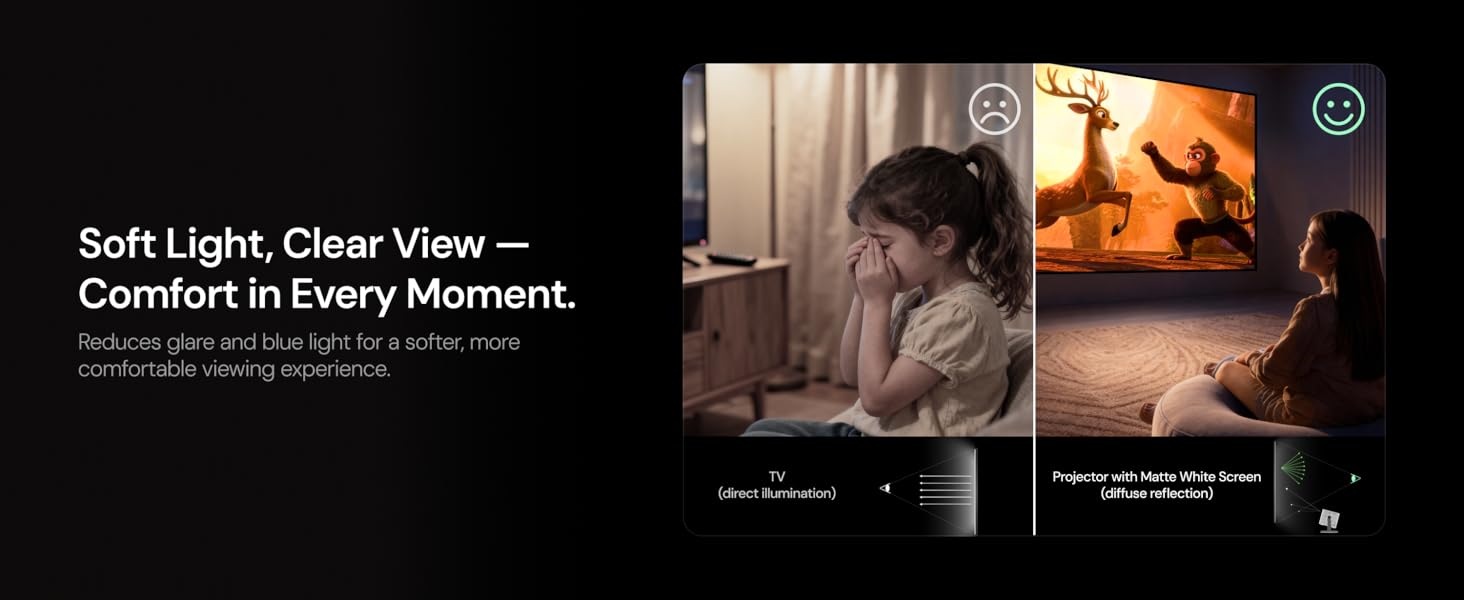 Matte White Screen with 1.3 Gain:Provides enhanced brightness and contrast for superior image quality, ensuring vivid and clear visuals.