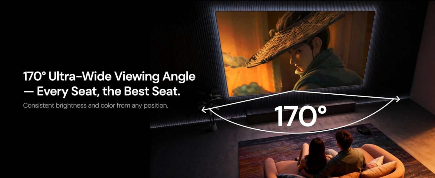 170° Half Gain Viewing Angle:Wide viewing angle ensures a crisp, bright picture from almost any seat in the room.
