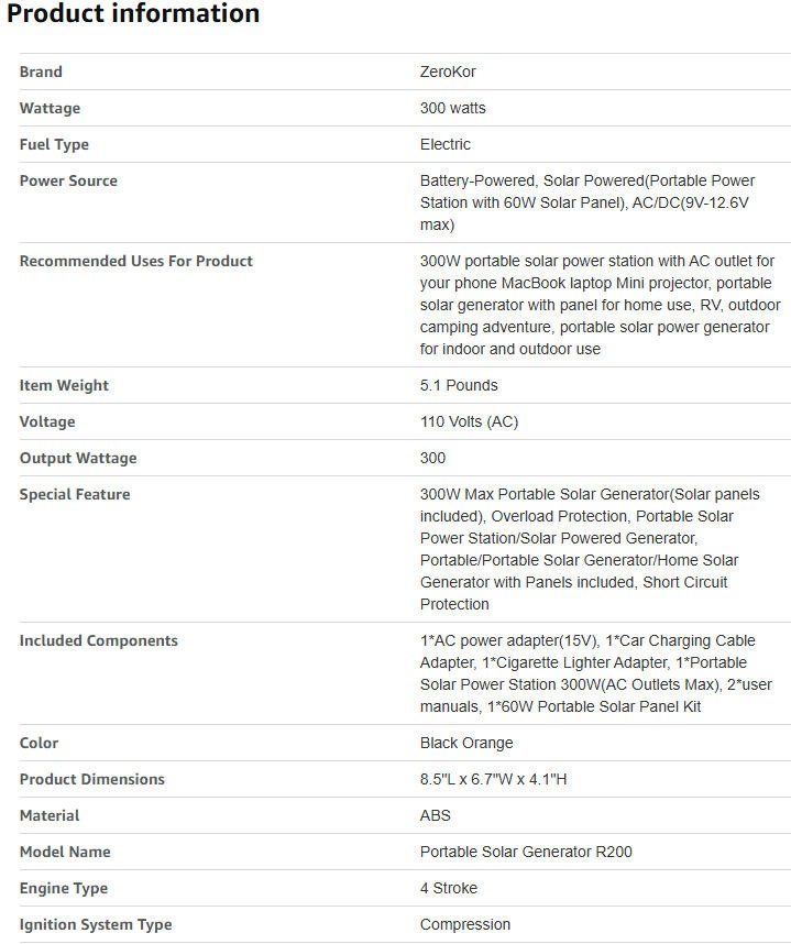 Portable Generator with 60W Solar Panel Included: with a big battery pack, ZeroKor 300W power stations Generator are powerful enough to charge smartphones,tablets,laptops,headphones or other outdoor Small Camping supplies (Tips:Using electrical appliances over 300W may damage the portable solar generator, especially some devices that are prone to heat or built-in air compressor such as coffee maker,Hair dryer, water pump etc )