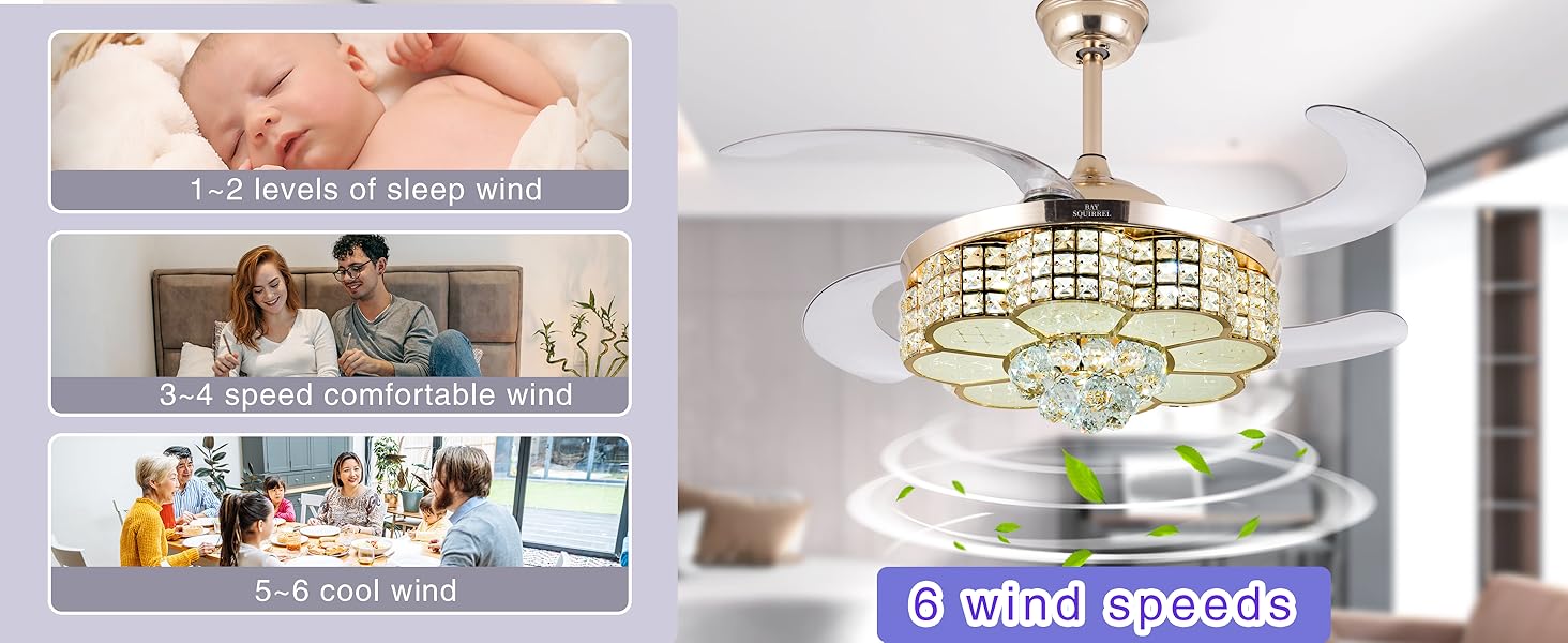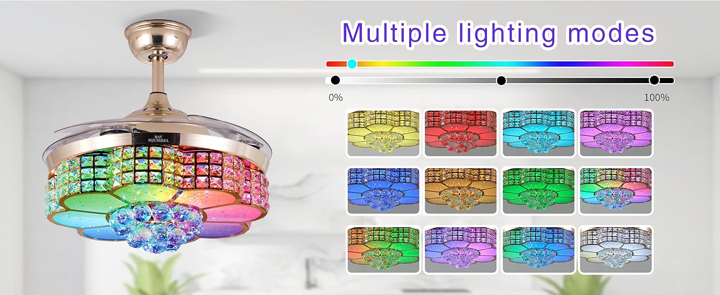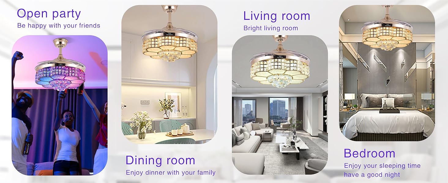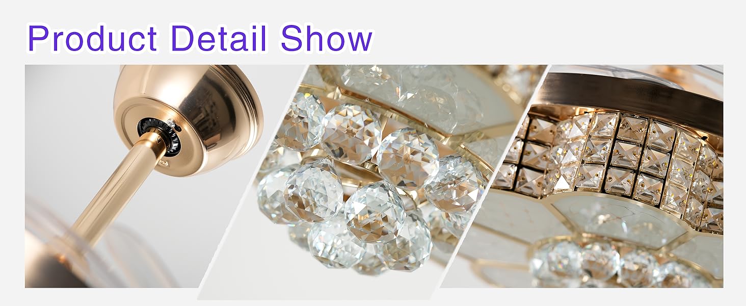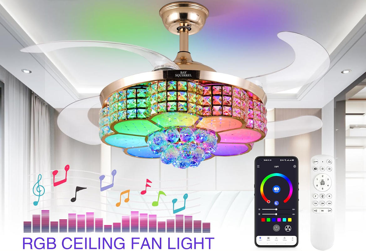 | Special Feature | 6-stop retractable fan blade, APP control, Bluetooth Speaker, RGB-LED Light, Retractable Crystal Ceiling Fan with Speaker |