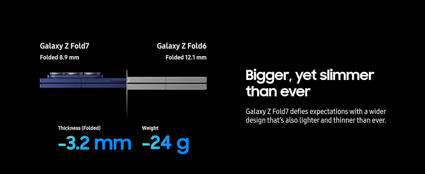 BIGGER, YET SLIMMER THAN EVER: Who would’ve guessed that wider could also be lighter? The design of Galaxy Z Fold7 is refined to feel like a traditional smartphone with its expanded cover display.