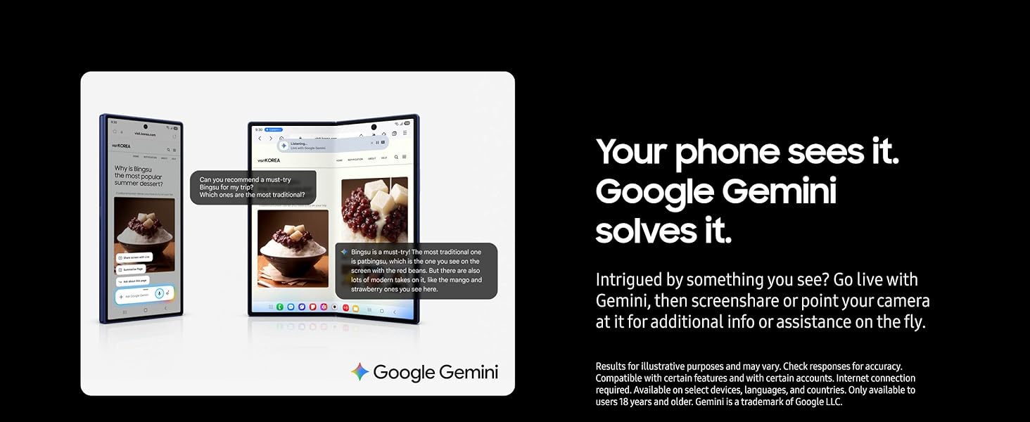 SCREENSHARE FOR STREAMLINED ASSISTANCE: Intrigued by something you see? Go Live with Google Gemini, then screenshare or point your camera at it for additional info or assistance on the fly.¹