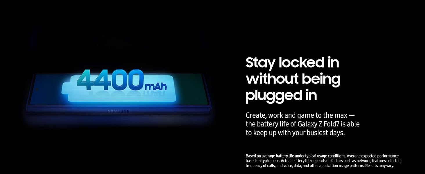 STAY LOCKED IN WITHOUT BEING PLUGGED IN: Create, work and game to the max – the battery life of Galaxy Z Fold7 is able to keep up with your busiest days.⁵