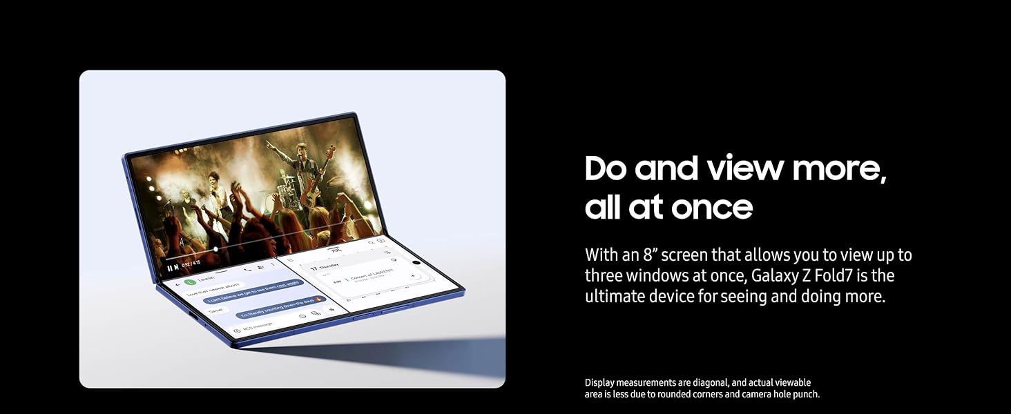 DO AND VIEW MORE, ALL AT ONCE: With an 8” screen that allows you to view up to three windows at once, Galaxy Z Fold7 is the ultimate device for seeing and doing more.²