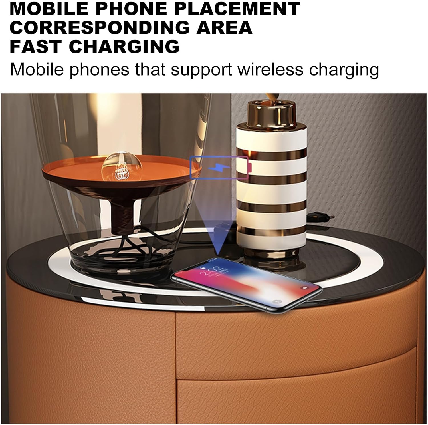 【Wireless Charging Station】The bedside cabinet locker has a wireless charging function. Put the device with the built-in wireless charging function in the designated area in the middle, and you no longer have to be limited by the trouble of charging cables. Allows you to easily charge