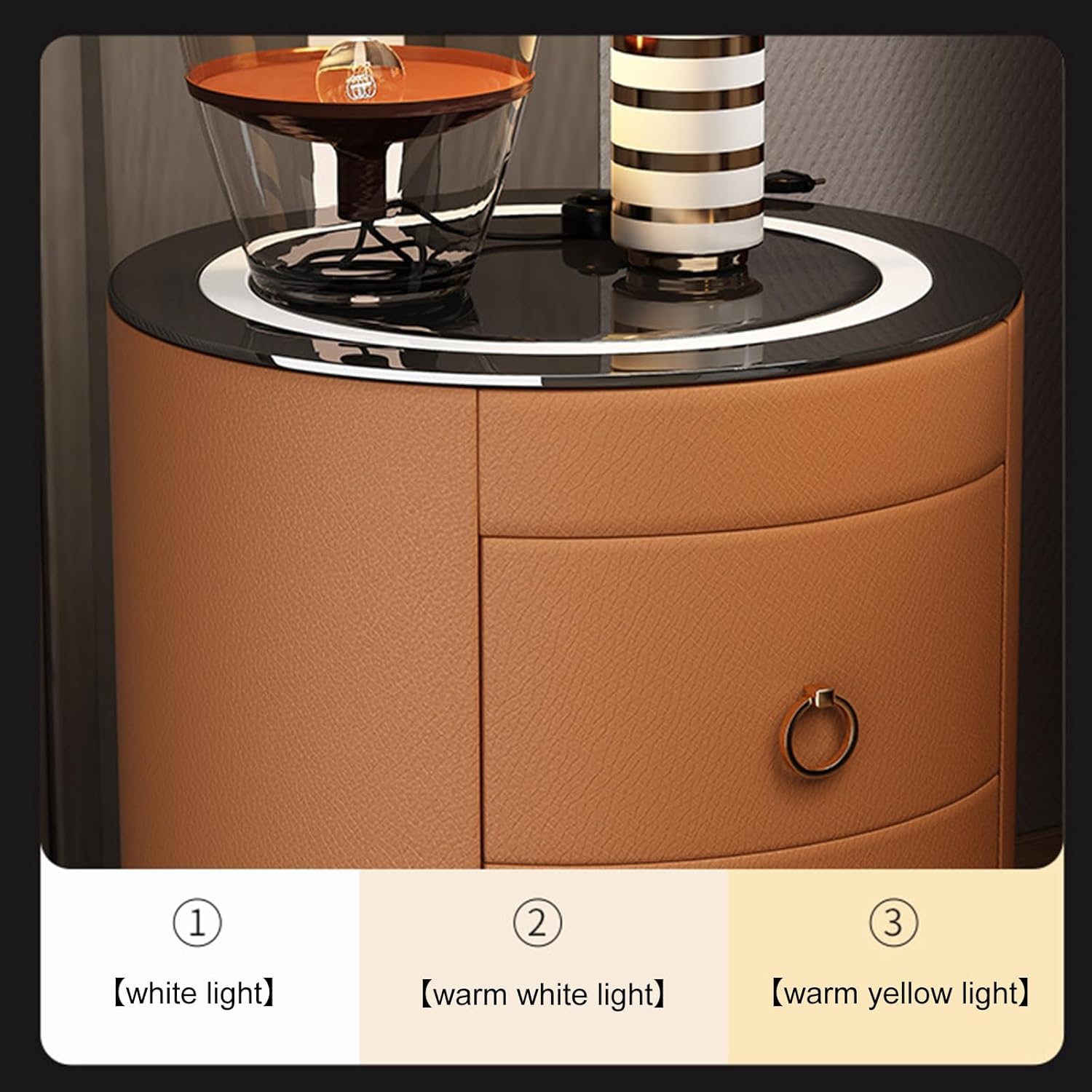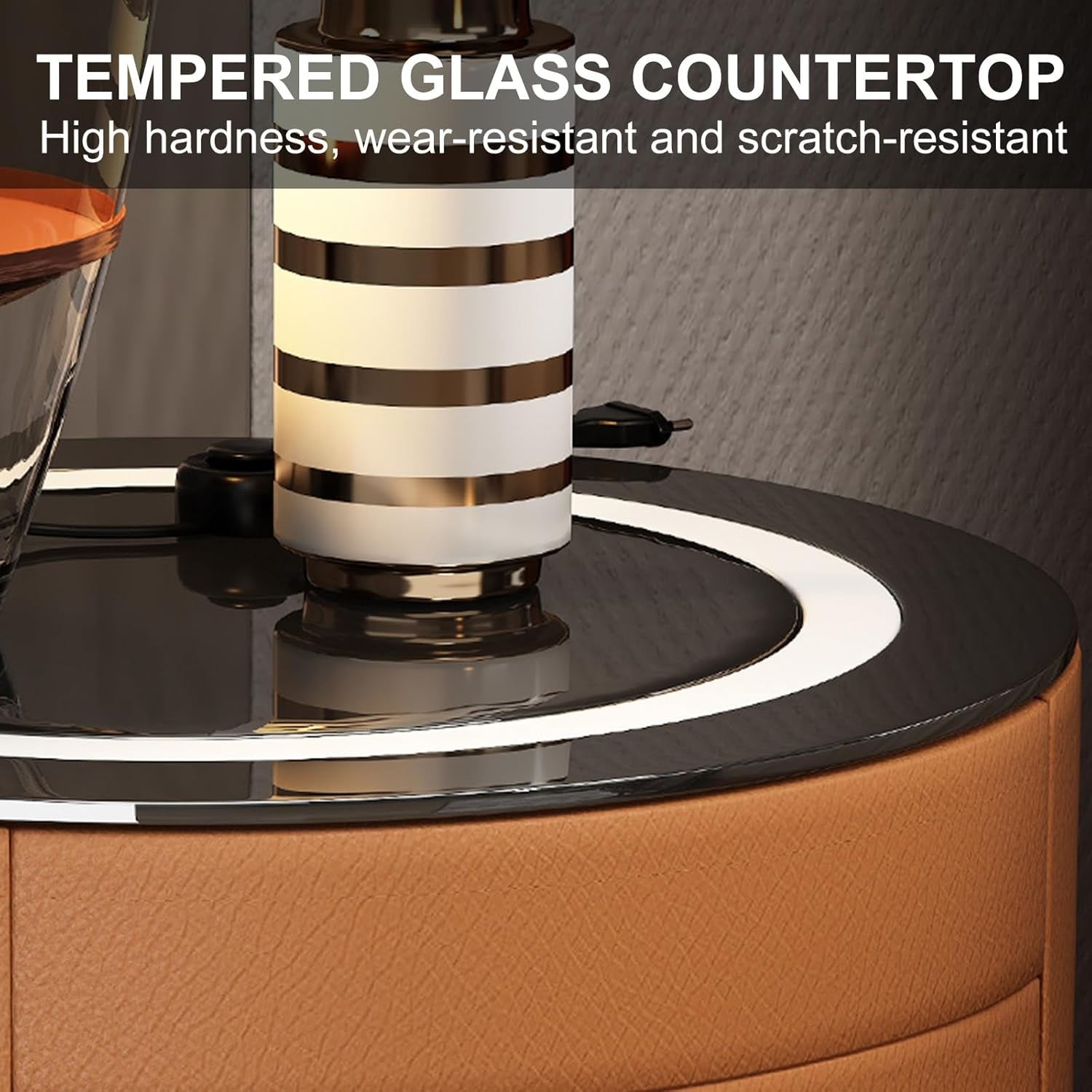 【Durable and Sturdy Material】Cabinet body is made of high-quality board and tempered glass, and the outside of the cabinet is wrapped with high-quality leather, with fine luster, wear-resistant and easy to clean, mild and anti-collision. The smart bedside table is equipped with a tempered glass tabletop, which is more wear-resistant and easy to maintain.
